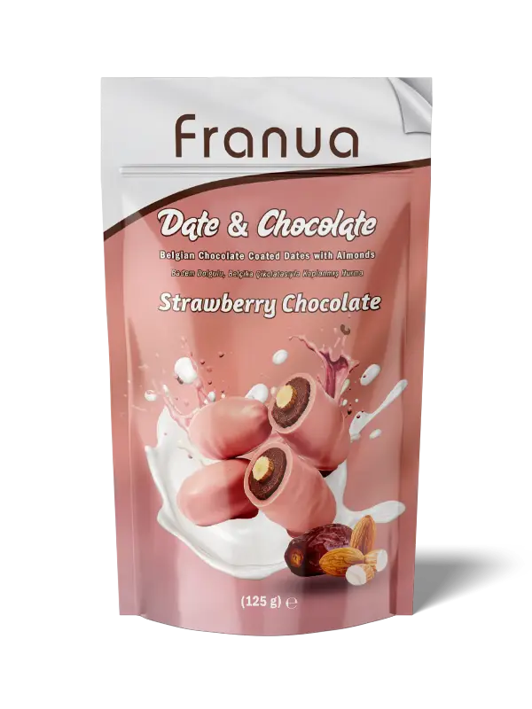 Franua çilekli çikolatalı hurma, doğal ve katkısız içerik arayanlar için özenle hazırlanır. Meyvemsi aroması ve dengeli yapısı sayesinde hem günlük tüketim hem de özel anlar için ideal bir seçenektir
